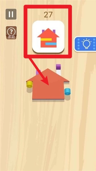 3.提示按键功能:右侧的灯泡图示按钮为提示功能,点击即可获得拼图参考方向,适合在卡关时使用快速破关。