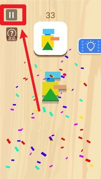 2.暂停与通关动画:点击画面左上角的暂停按钮可随时中断游戏进程;当匹配成功时,系统会自动播放彩带动画,以此提示通关成功。