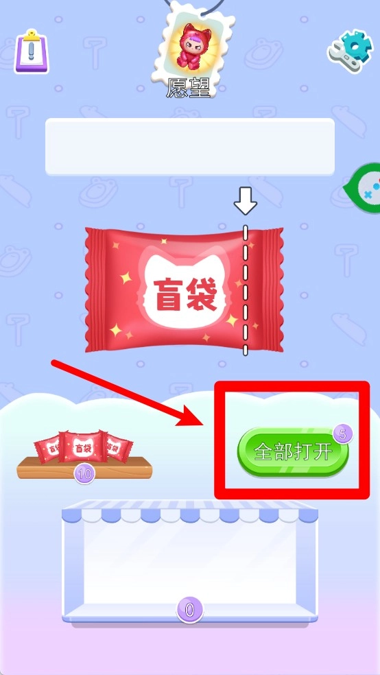1.开启盲袋:玩家每次开启盲袋时,可选择心愿卡辅助开启流程,以此收集不同的果冻人角色,提升玩法的趣味性与探索感。