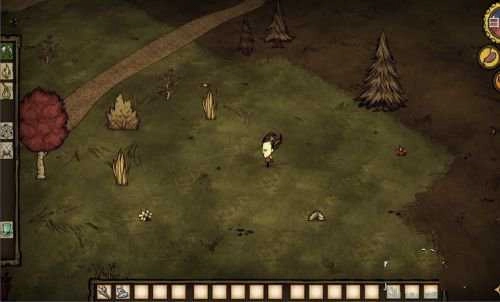 1、前期收集草、树枝、木头时,各凑够一组就可以沿着大路去探路了,路上遇到燧石和石头可以顺手捡起来,看到浆果或者萝卜之类的也要记得采集。