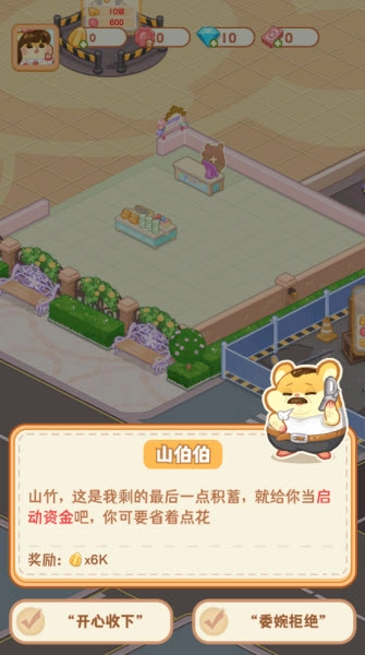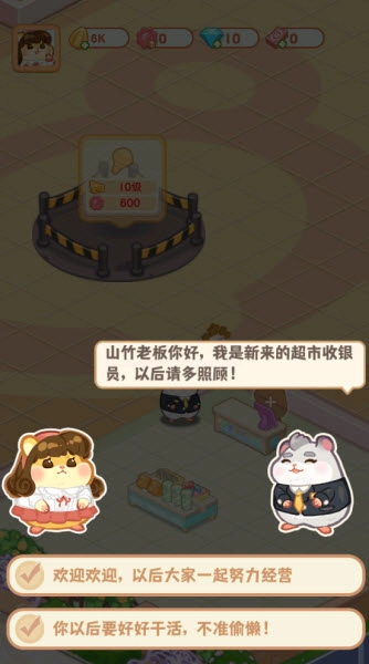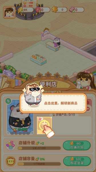 2.店铺升级:通过赚取的金币来扩大商店规模,开启更多功能区域。