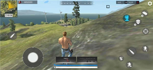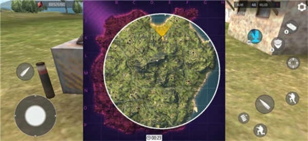 7、落地后通过操作虚拟按键控制角色移动,同时拾取地图上的枪械武器,以此消灭其他对手。