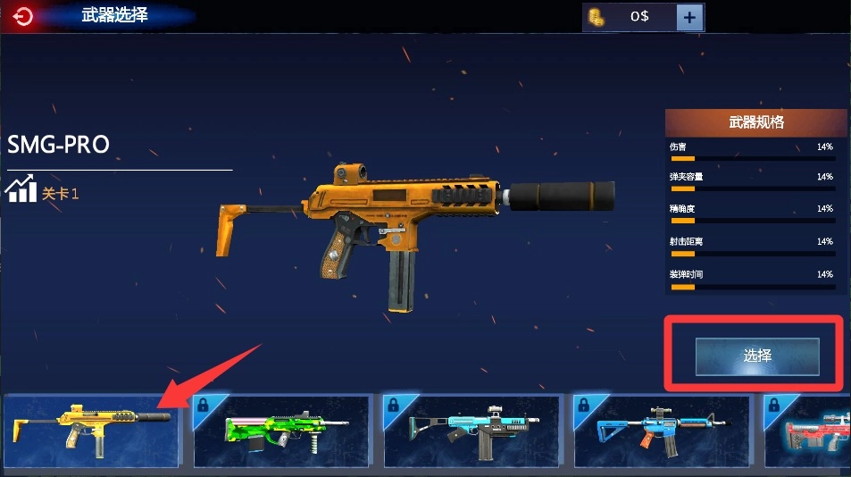 2、在武器库界面通过左右滑动来浏览各类枪械,选中狙击步枪可提升射程,选择冲锋枪则能增强近战爆发火力输出。