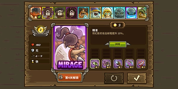 在英雄里,有一部分英雄是通过通关解锁的,比如MIRAGE在通过第4关后就能解锁。