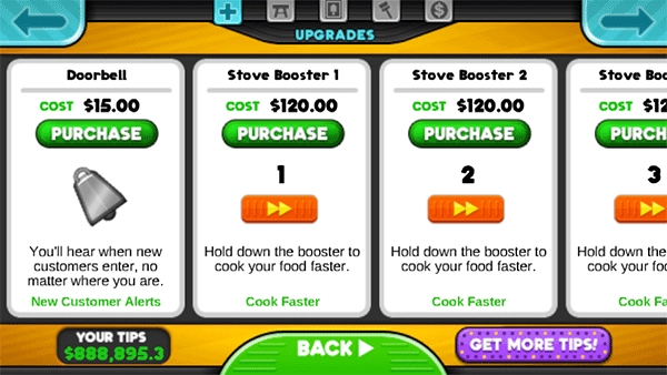 10、积累足够的金币后可以升级厨房设备或装修店面