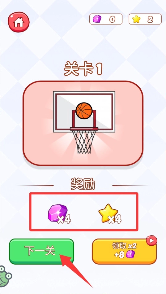 4、关卡结束后,系统会自动发放减压金币作为奖励,点击右下角那个闪亮的箭头按钮,就能进入更有创意的下一关了。