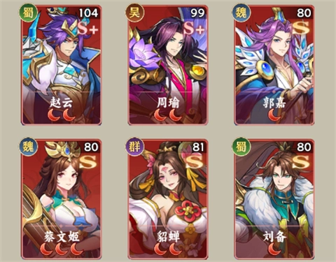 5、赵云+周瑜+郭嘉+蔡文姬+貂蝉+刘备