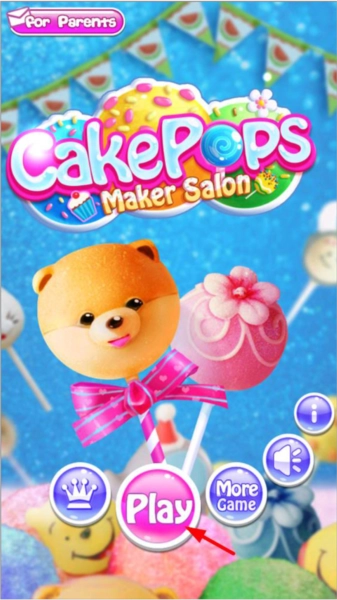 1、打开后,玩家能看到主页上展示着十分精美的棒棒糖蛋糕,点击“play”按钮即可进入口味选择环节,挑选自己喜欢的口味。