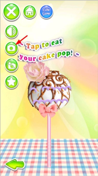 10、最可口的棒棒糖蛋糕终于完成啦,要是暂时不想享用它,可点击左上角的拍照按钮把它存到相册,方便分享给亲友。