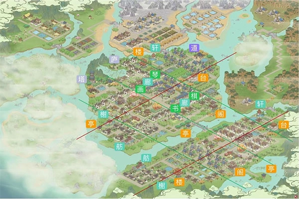 ⑥楼阁区:楼阁遥相呼应,汇聚全城文脉,翰墨飘香。