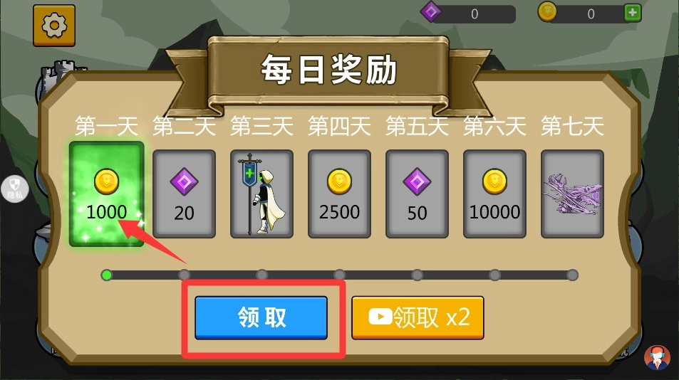1、启动后先点击屏幕中央的金币图标领取初始资金,这些货币可用于后续升级角色属性或解锁特殊技能。每日登录还能获得额外奖励。