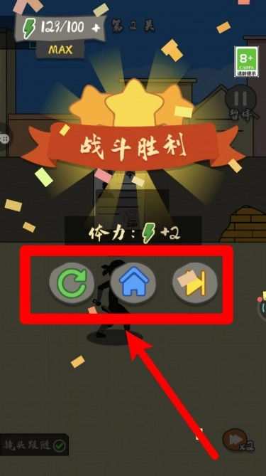 2.战斗胜利后会出现选项界面,你可以选择重玩当前关卡、返回主界面或是进入下一关,操作简单明了,能让你快速继续游戏。