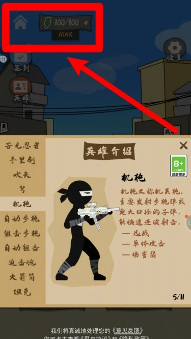3.界面顶部设有体力条,每次进入战斗场景都会消耗一定体力值;当体力值耗尽时,需要等待其自动恢复,待体力值回满后,即可再次参与紧张刺激的战斗。