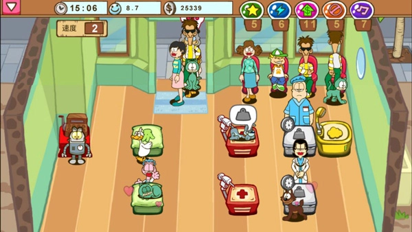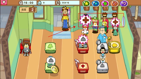 每天都会有很多病人来找你看病,只有提高看病的速度,才能赚到金币。