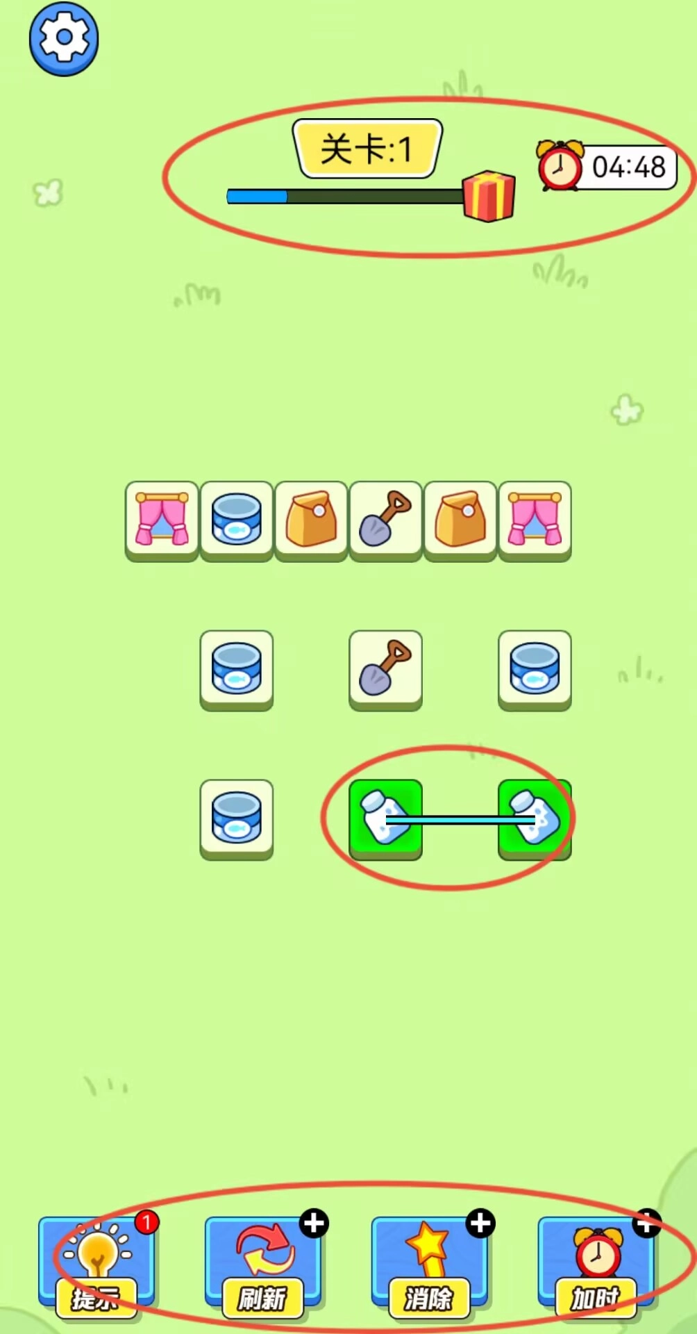2、策略性玩法着重考察玩家的观察能力,需要规划出最优化的消除路径,提前预判后续图案的排列情况,合理借助道具辅助,在限定时间内完成所有配对挑战。