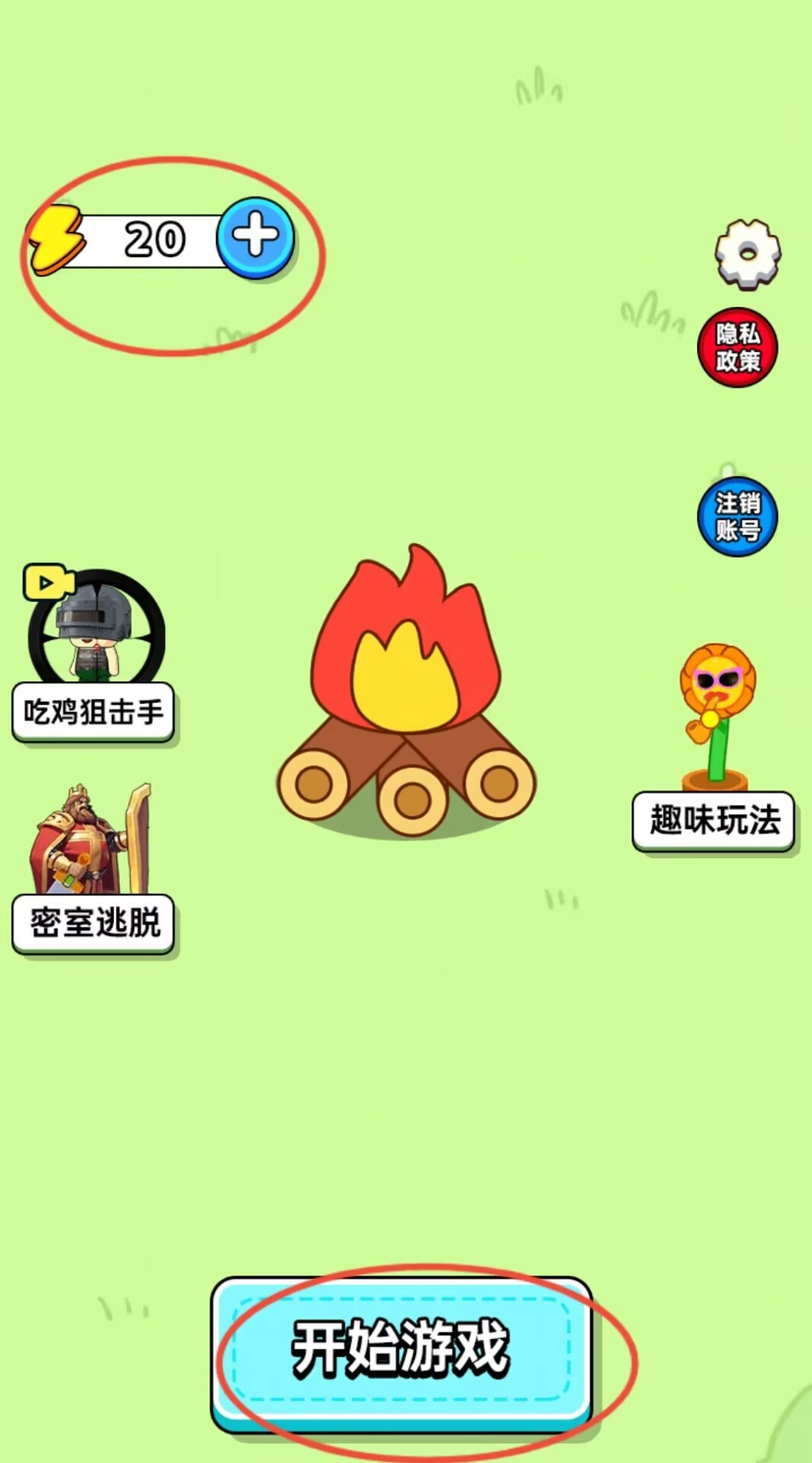 1、界面左上角会显示当前的体力数值,其左右两侧分别设置了密室逃脱和趣味玩法的入口,只需消耗一点体力就能开启消除挑战。