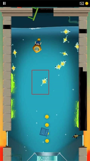 7、有一层玩家会进入水池,池中的小鱼体内藏有金币,玩家把所有小鱼吃完后,就能从下方的管道离开。