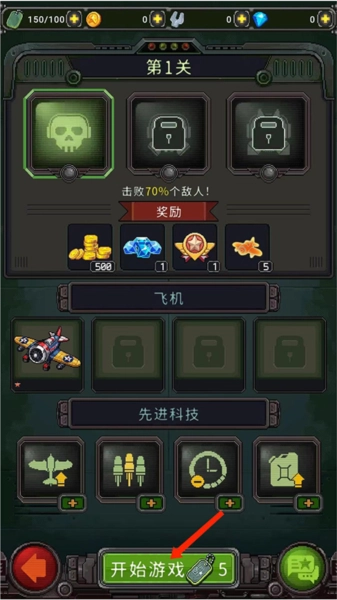 1、启动《空军1945》游戏,进入主界面后,能看到多个不同的关卡选项,我们选择第一关开始游戏。
