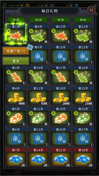 每日奖励天天玩,就能领取奖品,还能解锁每日任务和海量物品,完成这些任务后可以用来升级装备。