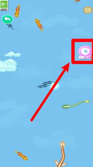 2.点击右上角的闪电视频图标,观看广告后可获得“无敌状态”,在此状态下的一段时间内,吞噬时不会被击退,进化效率将得到显著提升。