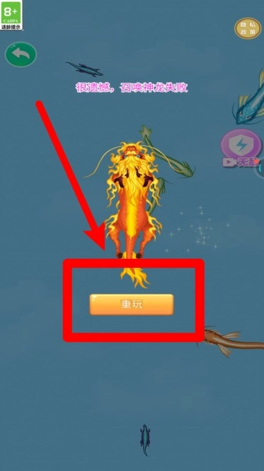 3.失败后点击屏幕中央的“重玩”按钮,就能立刻重新进入关卡,无需额外加载,流畅的节奏让你可以快速开启下一局挑战。