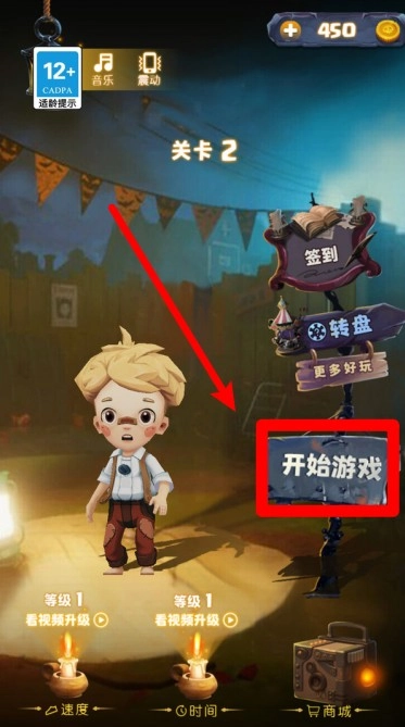 1.点击开始:在主界面中找到右侧的“开始”按钮并点击,就能迅速进入关卡,为即将开启的精彩刺激追逐挑战做好准备。