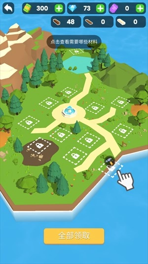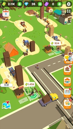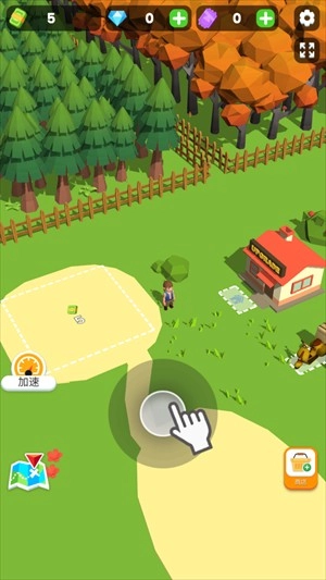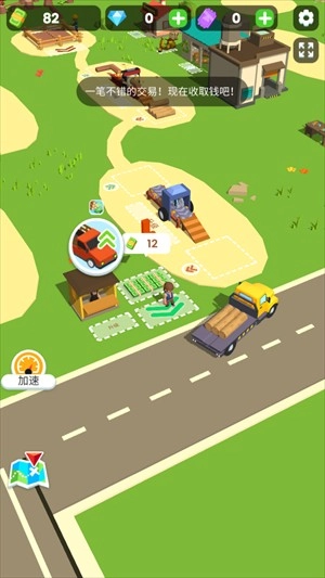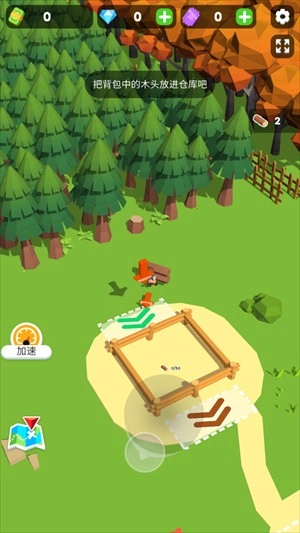 2、在这里你将化身一名小小的木材商人,需要先为自己储备大量木材,第一步是建造仓库,接着和工人们一起伐木来获取所需材料。