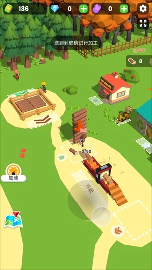 2、玩家可以使用各种道具加快砍伐树木的速度。