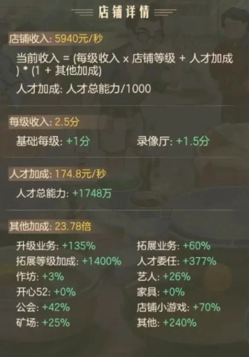注:提高人才收入也能提高店铺收入。