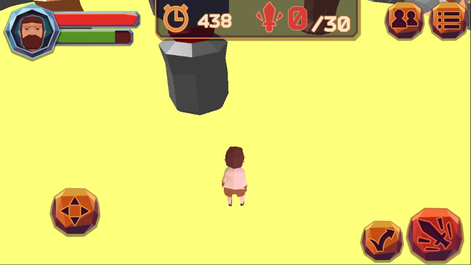 3、点击【arena】进入,右下角的剑形图标用于攻击,箭头图标用于跳跃,左侧的图标则对应人物的移动模式。