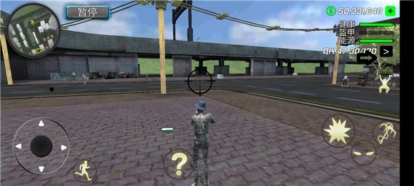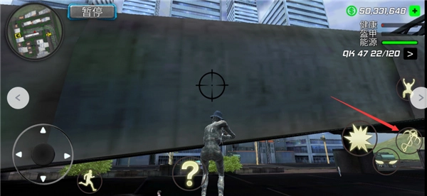 12、切换武器后,通过移动屏幕瞄准物体或汽车发起攻击;若破坏公共场合,会引来警察对你实施抓捕。