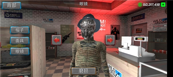 3、在角色选项里,我们还能挑选并购买各式各样的皮肤、帽子、眼镜和面具,并且可以对这些物品进行搭配组合。