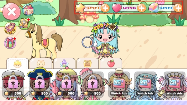 所有星星和爱心都已无限解锁,无需观看广告即可直接获取角色与道具。