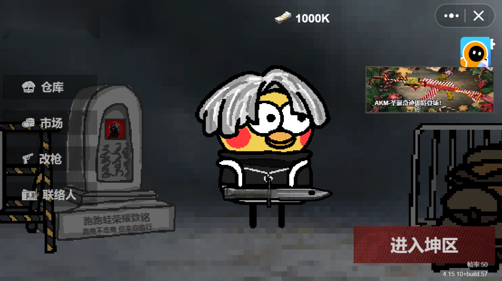 3、在【仓库】里挑选好这次要带的武器,点击右下角的【进入坤区】就能开启战斗(需要注意的是,战斗中如果死亡,携带的武器会丢失)