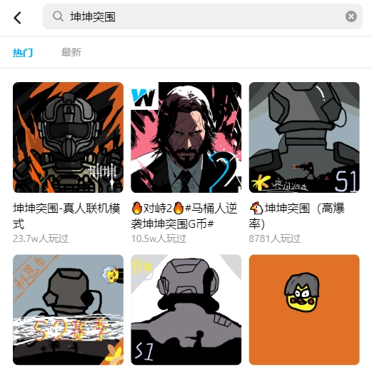 2、接着用号登录创游世界,在搜索框里搜索“坤坤突围”,就能看到有不少版本出现