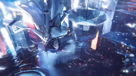夜幕如波般缓缓流淌,虚幻的影像相互交织。