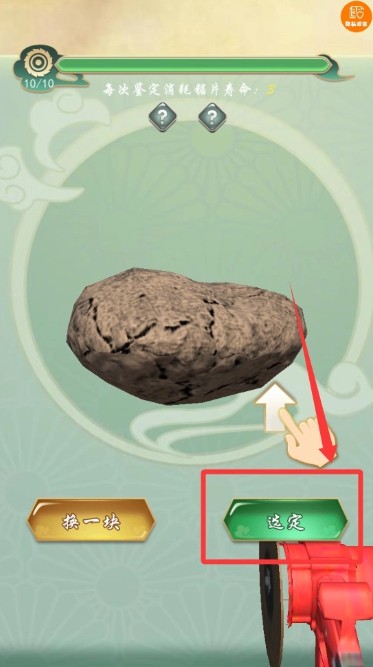 切割结束后系统会对翡翠品质进行鉴定,恭喜您得到了“豆种”级别的翡翠,这是市面上最常见的翡翠品类,点击屏幕就能继续挑战品质更优的原石。