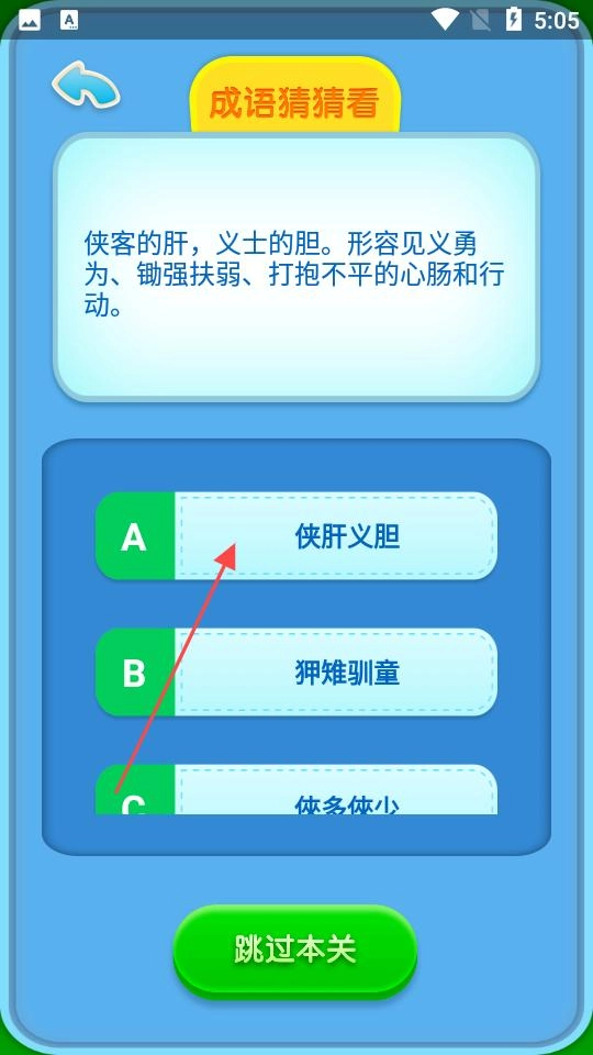 在玩法页面仔细阅读上方关于成语含义的说明文字,逐一查看下方给出的选项,把选项内容和含义描述进行对照,找到匹配的选项后点击对应的按钮,接着等待系统判断答案的对错。