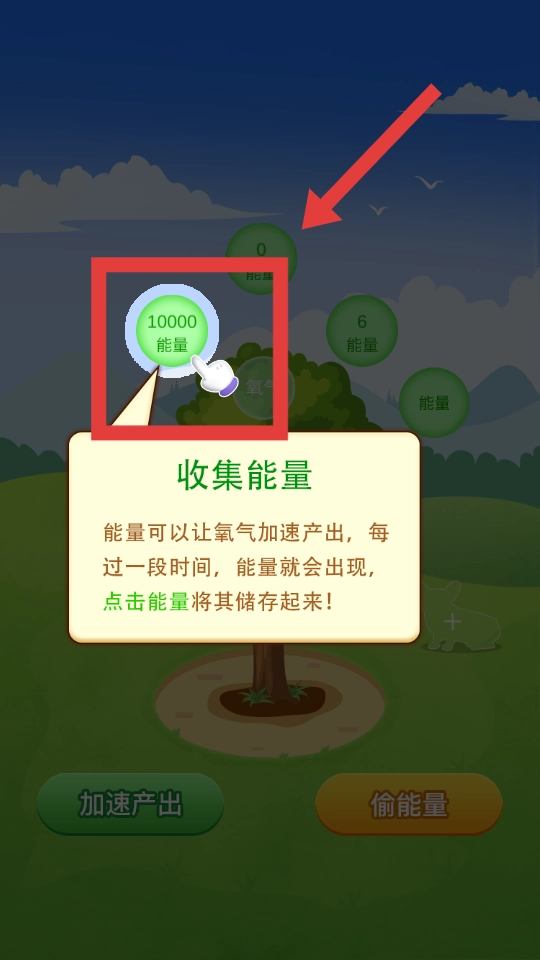 在游戏里要多留意能量球,一旦能量球出现就点击它收集能量,这些收集到的能量能加快氧气的产出速度,从而帮助后续积攒更多氧气球。