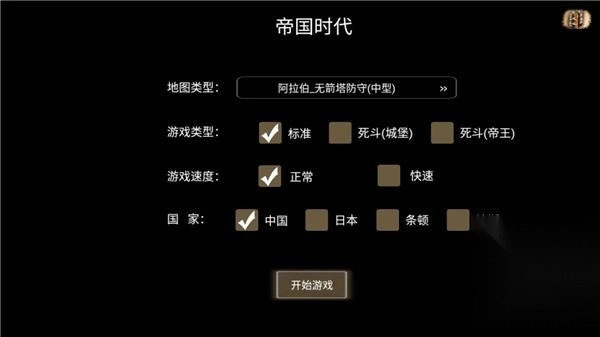 可以自主挑选地图类型、游戏类型、游戏速度以及国家阵营。