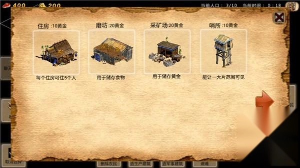 选择农民点击建造即可建造民用建筑或者军用建筑