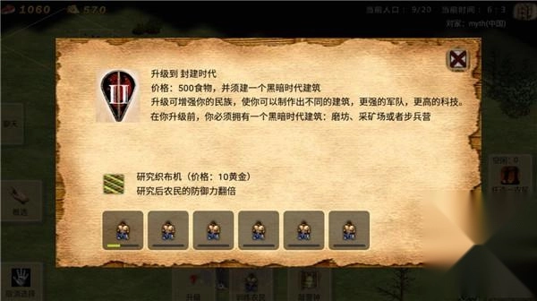 点击市政厅,可以造农民以及点击图标即可升级科技