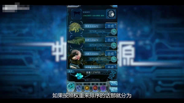 这里再简要梳理一下粒子、尘埃、雷电、智慧、暗物质这几个概念之间的关联。游戏里要持续创造和积累新物种,就得不断攒暗物质,而暗物质只能靠升级物质和混沌来获取。因此,为了升级物质与混沌,就需要持续积累粒子和尘埃。而制约粒子和尘埃产量的主要因素又是雷电。当粒子和尘埃的总量达到要求后,升级物质和混沌不仅能提升雷电产量,还可能有机会获得暗物质。智慧是游戏里相当珍稀的资源,它产量很低,而且只能通过时间慢慢累积。它的作用一是作为触发大爆炸的唯一必要条件,二是可以直接当作货币用来购买粒子、尘埃和雷电。所以粒子、尘埃和雷电三者之间是相互促进、互为补充的关系。粒子和尘埃能提升雷电的产量,反过来雷电也能提高粒子和尘埃的产量,同时雷电的产量还限制着粒子和尘埃产量提升的快慢。提升粒子产量只需要雷电,而提升尘埃产量则需要粒子和雷电。这么解释之后你会发现,在游戏里合成粒子和尘埃时,只有把雷电当作唯一的限制条件,才有可能得到最高的收益。