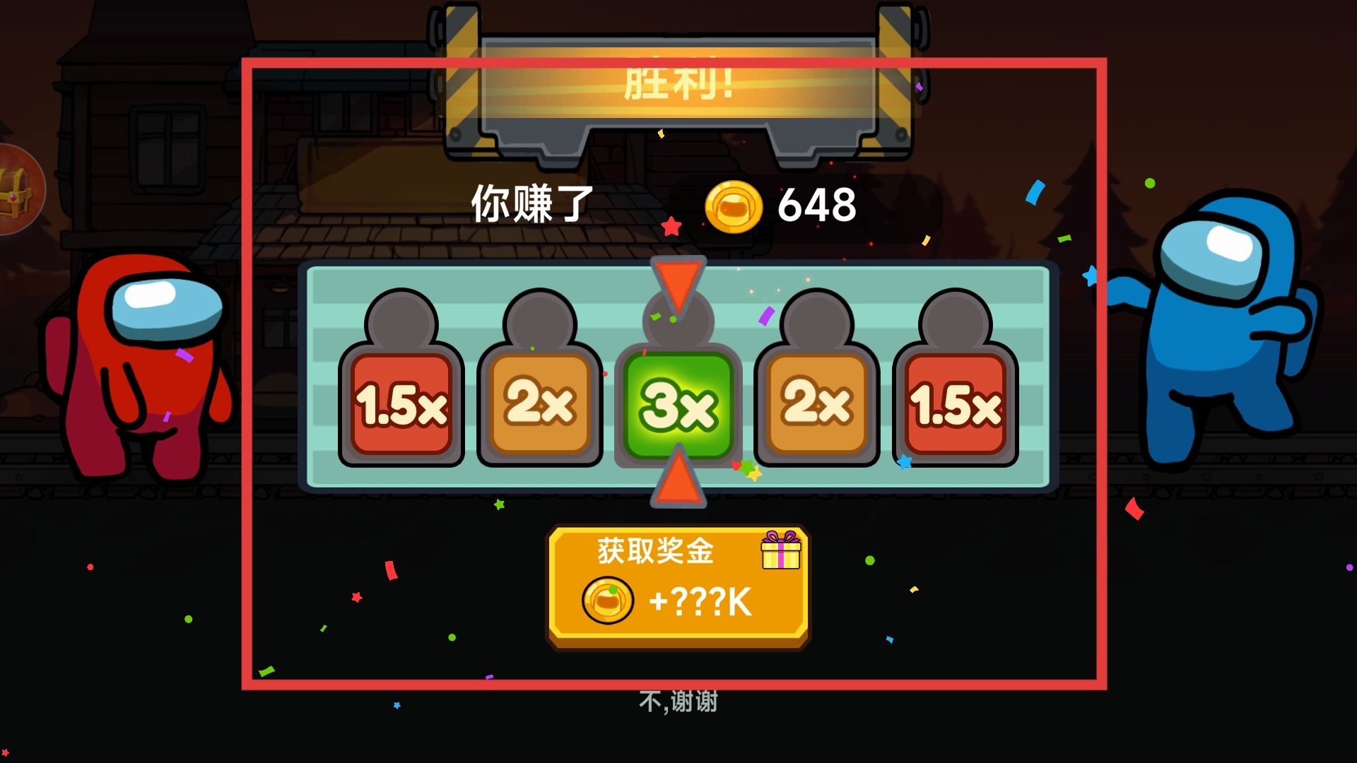 成功击退僵尸并完成关卡后,会进入奖励界面。此时屏幕上会显示胜利信息以及获得的金币数量,下方还设有不同倍数的奖励选项。这些金币可用于在游戏内购买道具和升级能力。