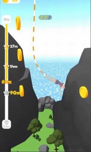 这款游戏的画面高清且富有质感,你只需点击屏幕的不同位置,就能操控人物完成快速蹦极。