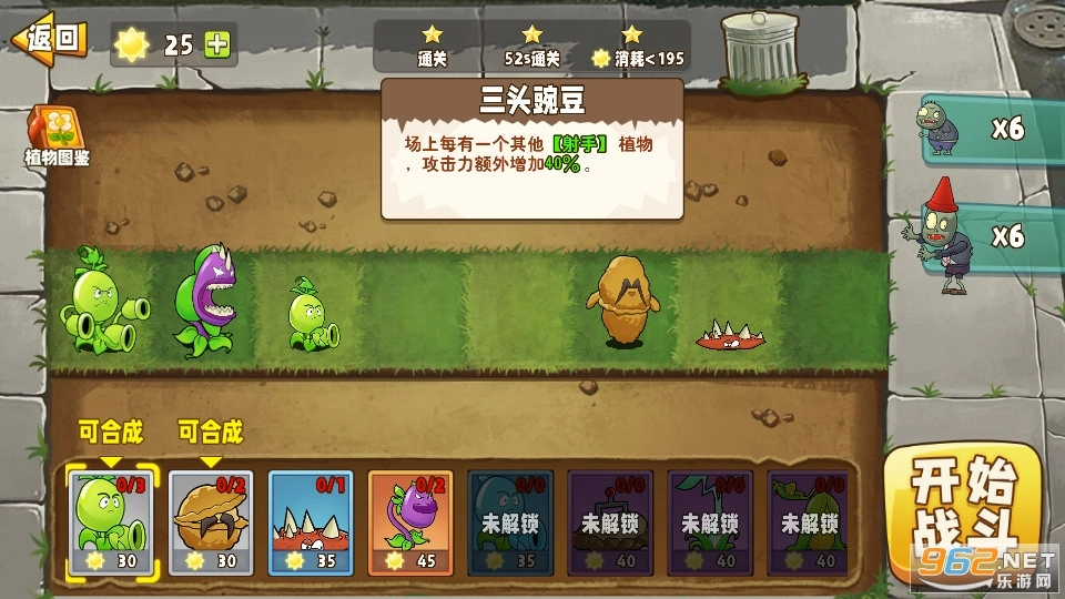 游戏的玩法丰富多样,植物种类也十分繁多,这为玩家带来了更多的挑战与乐趣。在游戏过程中,玩家收集到足量的能量豆后,就能自由合成各式各样的角色,让它们在短时间内喷射出大量豌豆,给敌人造成重创。赶紧来挑战一番吧!