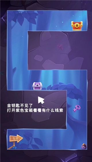 有时候关卡里找不到金钥匙,得先打开紫色宝箱获取线索才行。