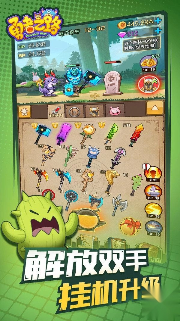 在合成与冒险的旅途中,不丢弃低级武器,只要集齐两个,就能将它们合成为更高级的武器。