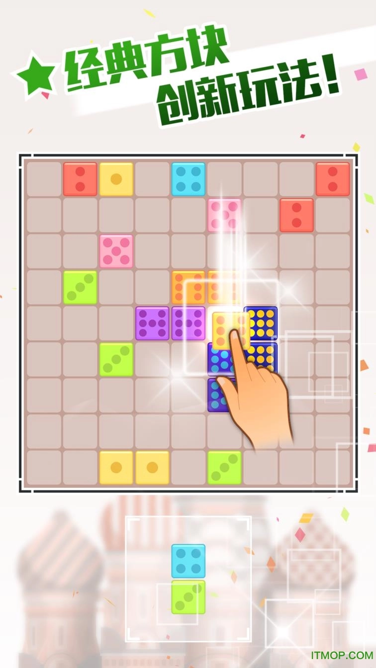 】不断有备选方块冒出来,你可以把它们随意摆放到大方格里,只要放下去就能得分。这样玩,你会重温儿时玩七巧板的乐趣!