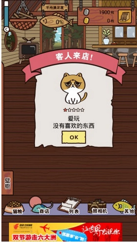 1, 当猫咪离开后,系统会对它的满意度进行结算,玩家随之获得金币奖励;游戏内还设有地图收集机制,只要成功逗乐一只猫咪,对应的地图碎片就能被收入囊中。